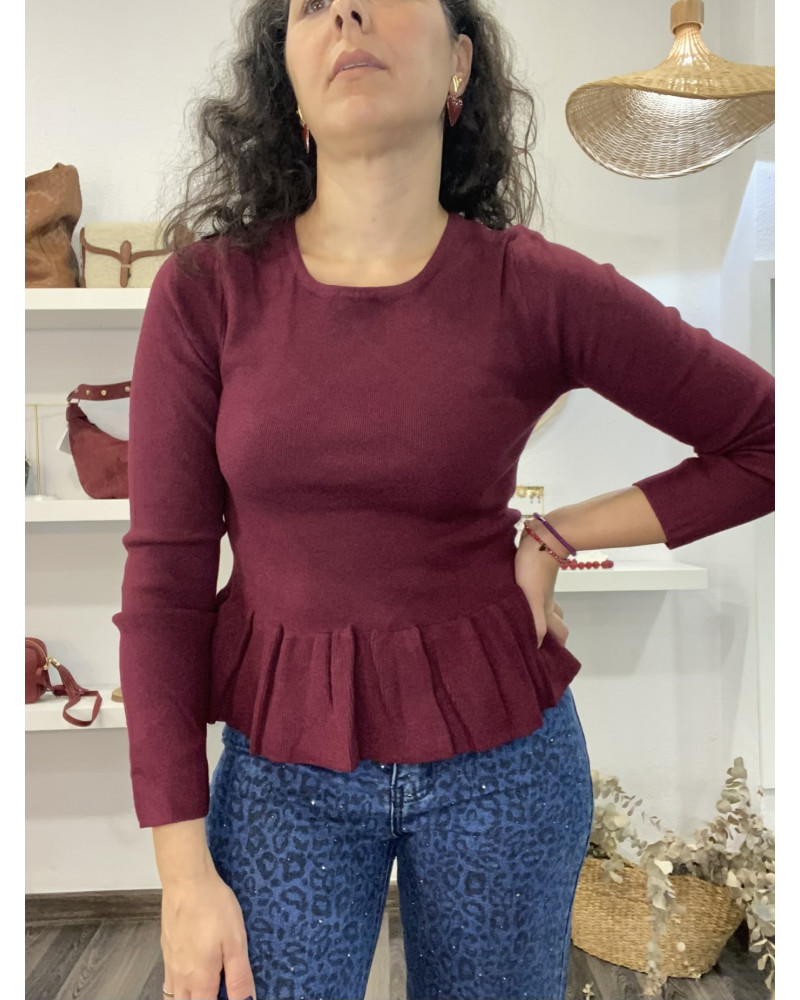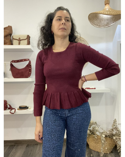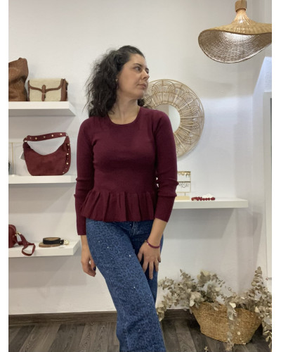 Este jersey burdeos con volante en el bajo es perfecto para darle un aire romántico y sofisticado a tu outfit. Su tejido de punto fino y su corte entallado estilizan la figura, mientras que el detalle de volantes aporta un toque moderno y femenino. Ideal para combinar con vaqueros en un look de día o con pantalón de vestir para un estilo más formal. ¡ Un básico con encanto que no puede faltar en tu armario!
