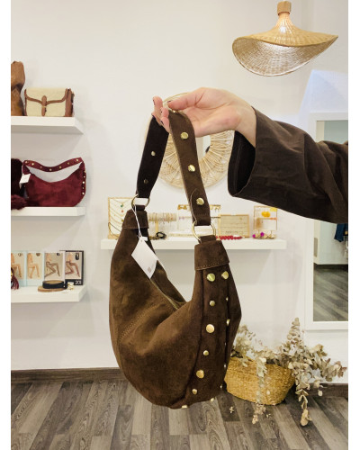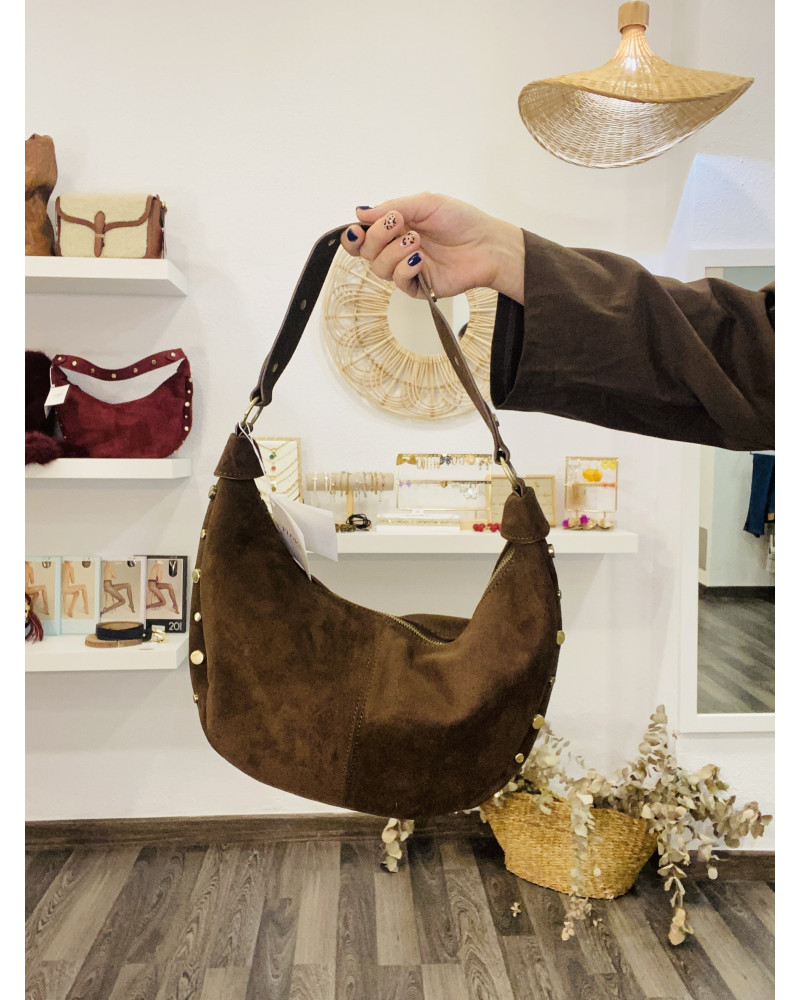 BOLSO DE ANTE CHOCOLATE CON TACHUELAS