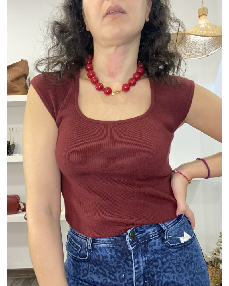 Collar corto de bolas rojas con cierre dorado delantero. Dale un toque atrevido y diferente a tus looks con este collar atrevido y diferente a tus looks con este collar corto de bolas rojas. Su diseño destaca por el cierre delantero, que lo convierte en una pieza original y fácil de llevar. Ideal para añadir color y personalidad a tus estilismos, tanto de día como de noche.
