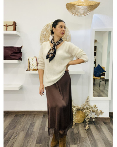 Elegante pañuelo con acabado suave y ligero, perfecto para darle un toque de estilo a cualquier look. Llévalo anudado al cuello, en el pelo o al asa del bolso para un toque sofisticado y femenino.