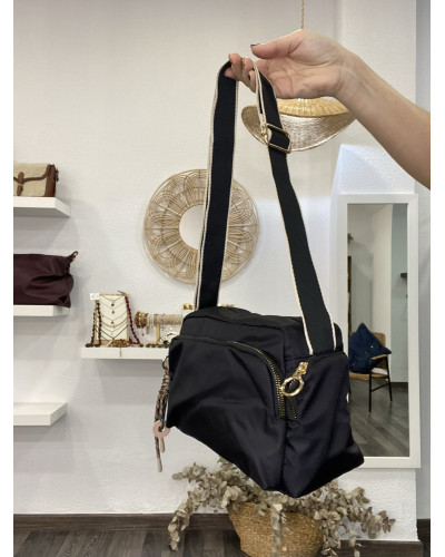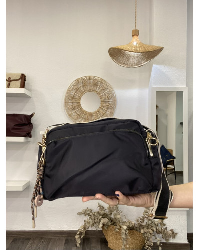 Práctico y con estilo, este bolso de nylon es perfecto para tu día a día. Su diseño ligero incluye bolsillos laterales y delantero para que tengas todo a mano, y un asa larga ajustable que te permite llevarlo cómodamente al hombre o cruzado.