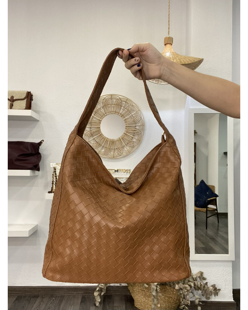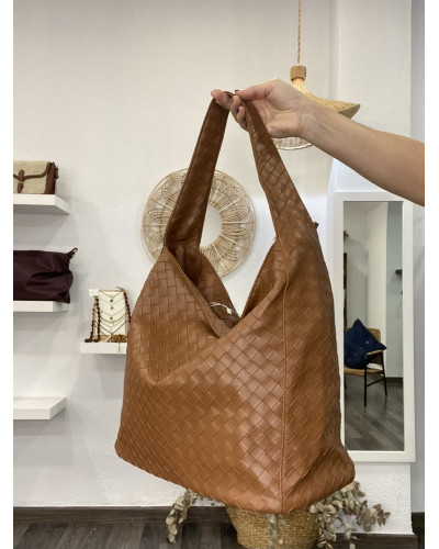 Un diseño elegante y actual que no pasa desapercibido. Este bolso grande de color camel destaca por su asa corta con acabado trenzado, que aporta un toque moderno y sofisticado.