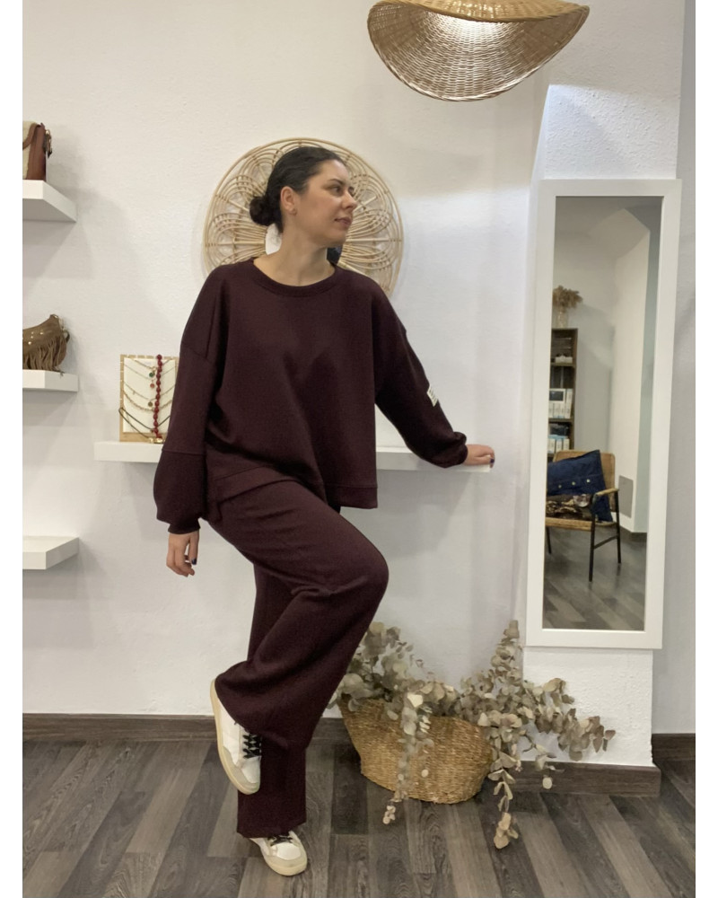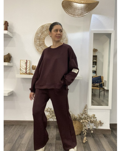 Descubre el equilibrio perfecto entre comodidad y estilo con nuestro chándal oversize de tejido suave. Su pantalón con goma en la cintura se adapta a tu figura sin apretar, ofreciendo máxima libertad de movimiento, mientras que los bolsillos laterales aportan un toque práctico y casual.