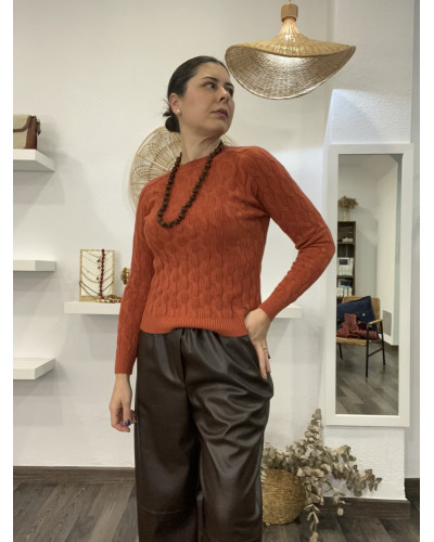 Luce un look cálido y atemporal con nuestro jersey d punto con diseño de ochos. Su tejido suave y ligeramente grueso aporta comodidad y calidez, mientras que el patrón de ochos añade un toque clásico y elegante. Ideal para combinar con jeans, faldas o pantalones de estilo casual.
