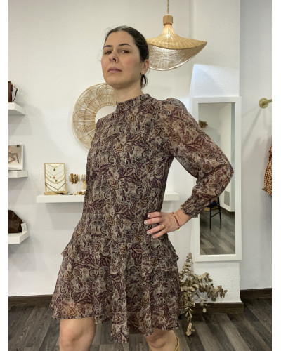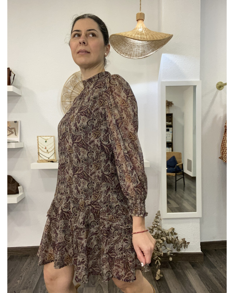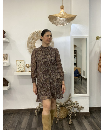 Un vestido versátil y femenino pensado para quienes buscan comodidad sin renunciar al estilo. Con cuello alto, mangas largas ligeramente abullonadas y falda con volante, este diseño crea un movimiento elegante que funciona igual de bien en el día a día que en una ocasión especial.