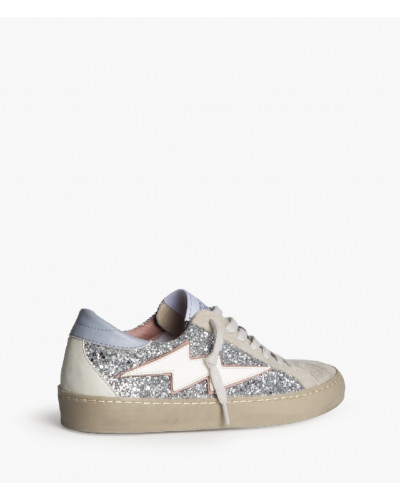 Dale un toque de estilo a tus looks diarios con estas zapatillas deportivas de  diseño urbano y femenino. Confeccionadas en una combinación de ante suave y paneles de glitter, destacan por su detalle lateral en forma de rayo que aporta personalidad y tendencia.