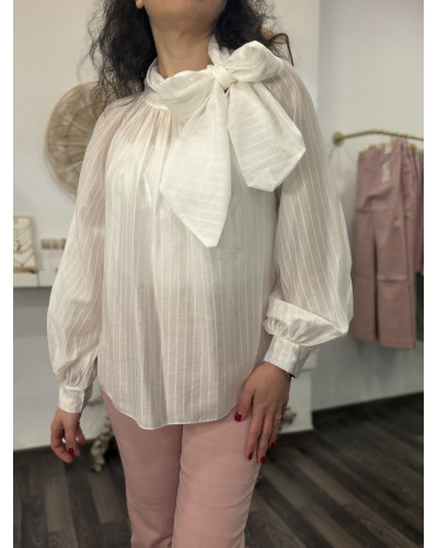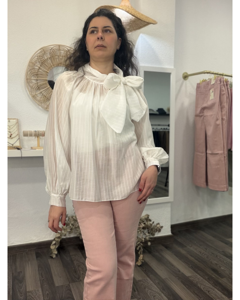CAMISA BLANCA CON LAZADA EN EL CUELLO