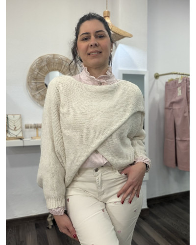 Jersey de punto suave con diseño tipo capa y mangas, que combina comodidad y estilo en una sola prenda. Su caída fluida aporta movimiento y un efecto favorecedor, ideal para crear looks sofisticados sin esfuerzo.