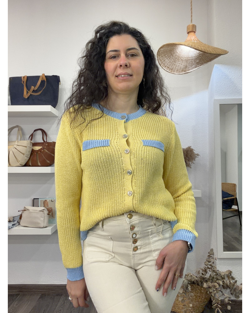 CHAQUETA PUNTO FINO AMARILLA