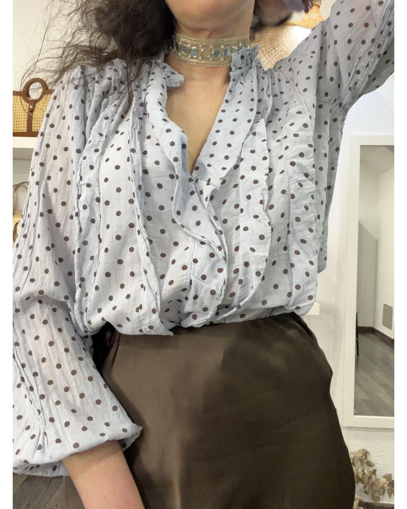 BLUSA LUNARES EN AZUL Y CHOCOLATE