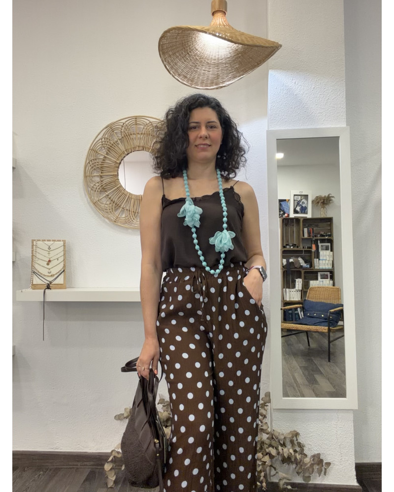 Top de tirantes finos con acabado satinado que aportan un toque sofisticado y femenino. El delicado encaje realza la prenda, convirtiéndola en un básico imprescindible de fondo de armario.