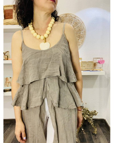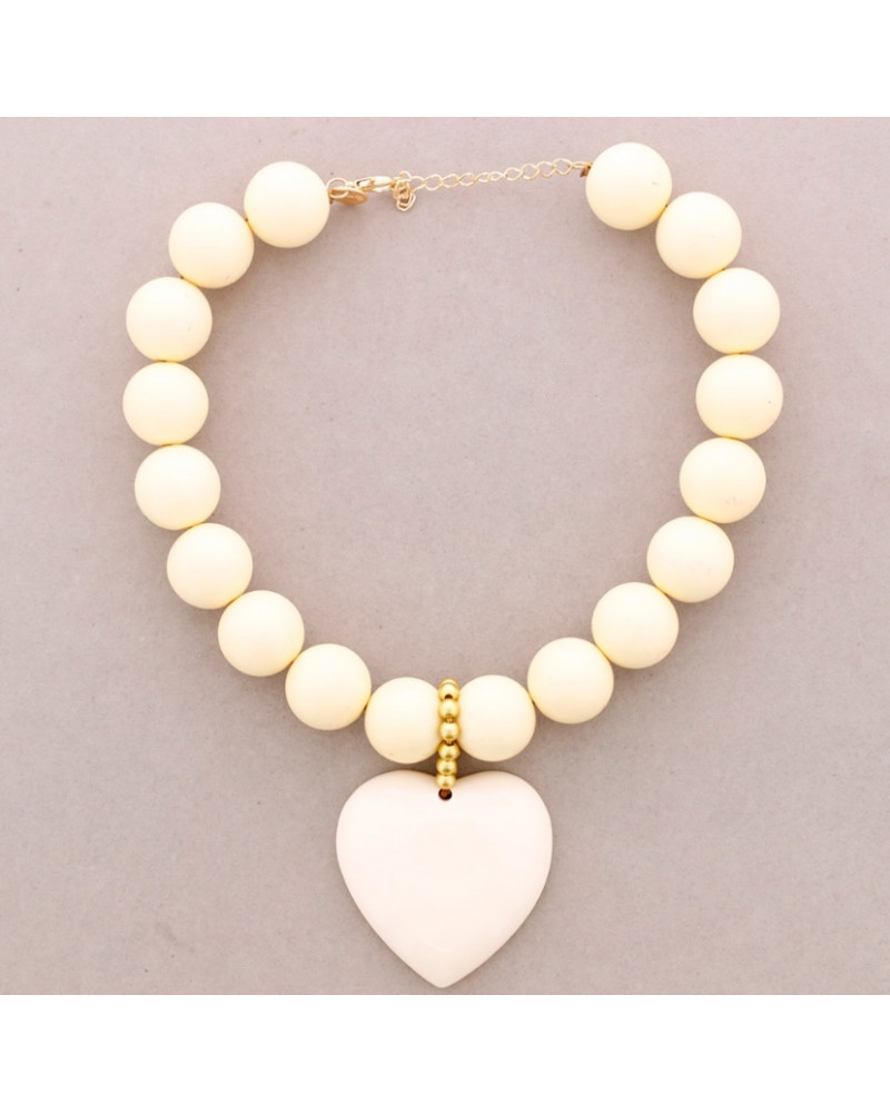Gargantillas bolas resina con colgante de corazón. Color beige.