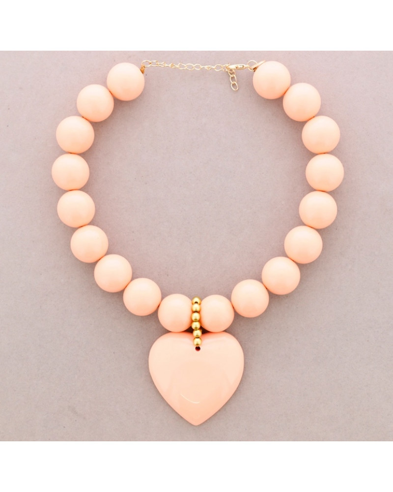 Gargantilla bolas resina colgante corazón. Color rosa pastel.